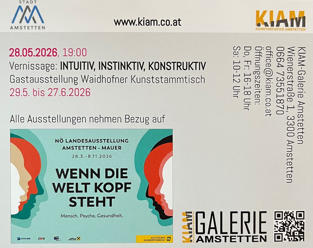 Gruppenausstellung Verein Kunstbank Ferrum/Kunststammtisch WY in der Stadtgalerie Waidhofen/Ybbs.